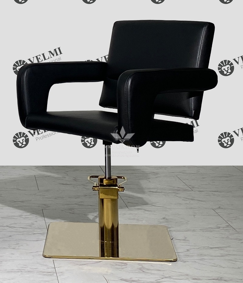 Завдяки гідравлічному регулюванню висоти та зручним підлокітникам, крісло гарантує комфорт як майстру, так і клієнту. Ви можете вибрати колір оббивки за своїм бажанням, а основа золотий квадрат дозволяє адаптувати крісло під індивідуальний стиль салону.