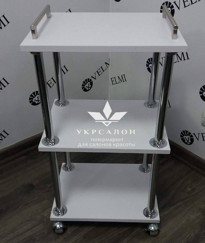 Має три полки однакового розміру, на які Ви зможете поставити, як косметологічний апарат, так і різні витратні матеріали.