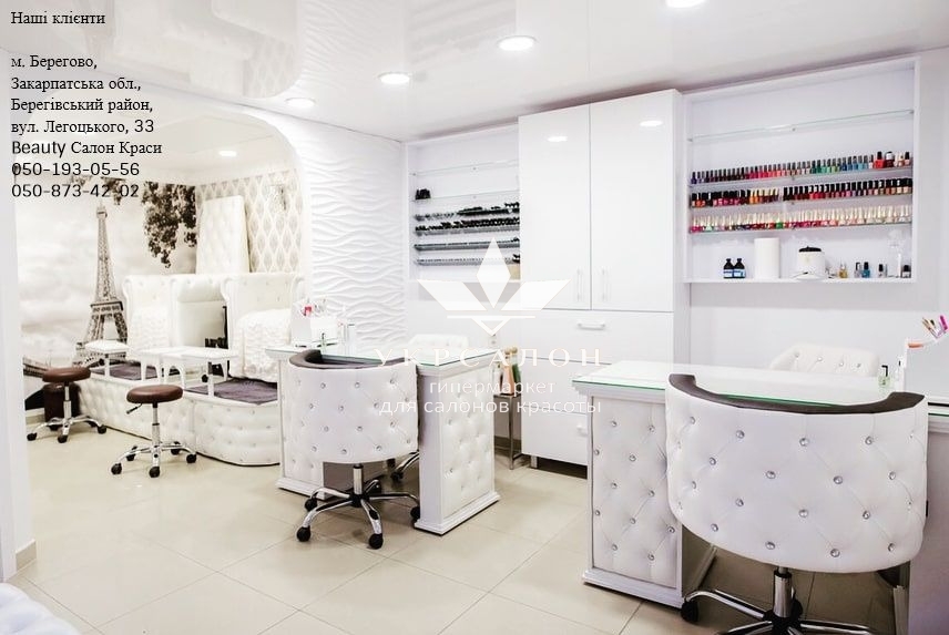 Ви можете додатково замовити предмети меблів, що входять в цю колекцію, для створення інтер'єру кабінету в єдиному стилі: манікюрні столи, підкорені крісла Трон, пуфи для майстра, комоди, тумби для експрес-манікюру і т.п.