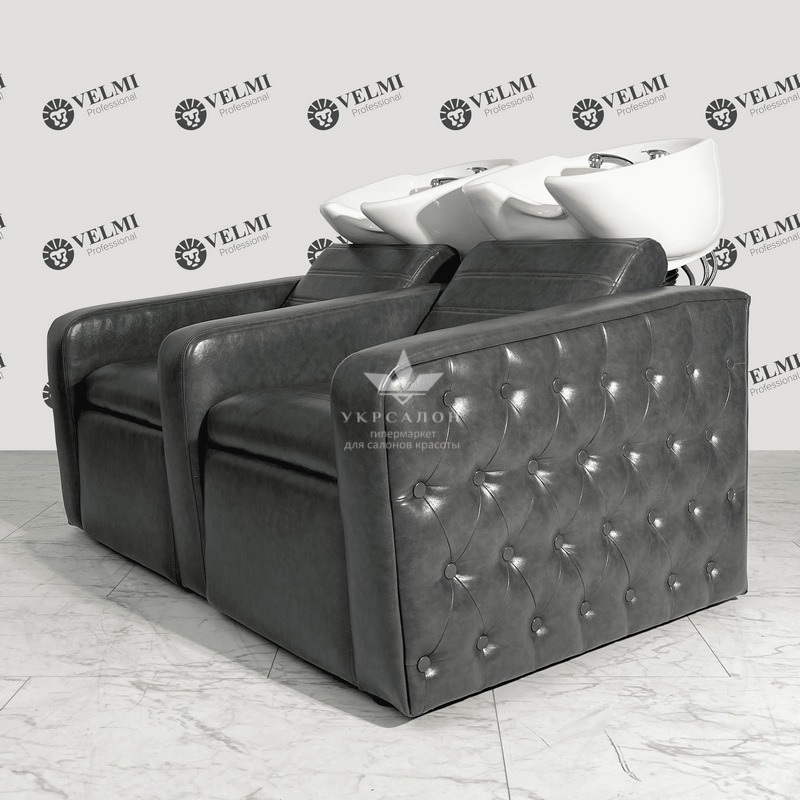Перукарська мийка Milan Duo – професійне рішення для сучасних салонів краси, де важливі комфорт клієнта, зручність майстра та акуратна подача в інтер'єрі. Модель поєднує ергономічну посадку, надійну конструкцію та виразний дизайн: широкі крісла з декоративним простроченням та ґудзиками створюють презентабельну зону миття та підвищують загальний рівень сервісу.