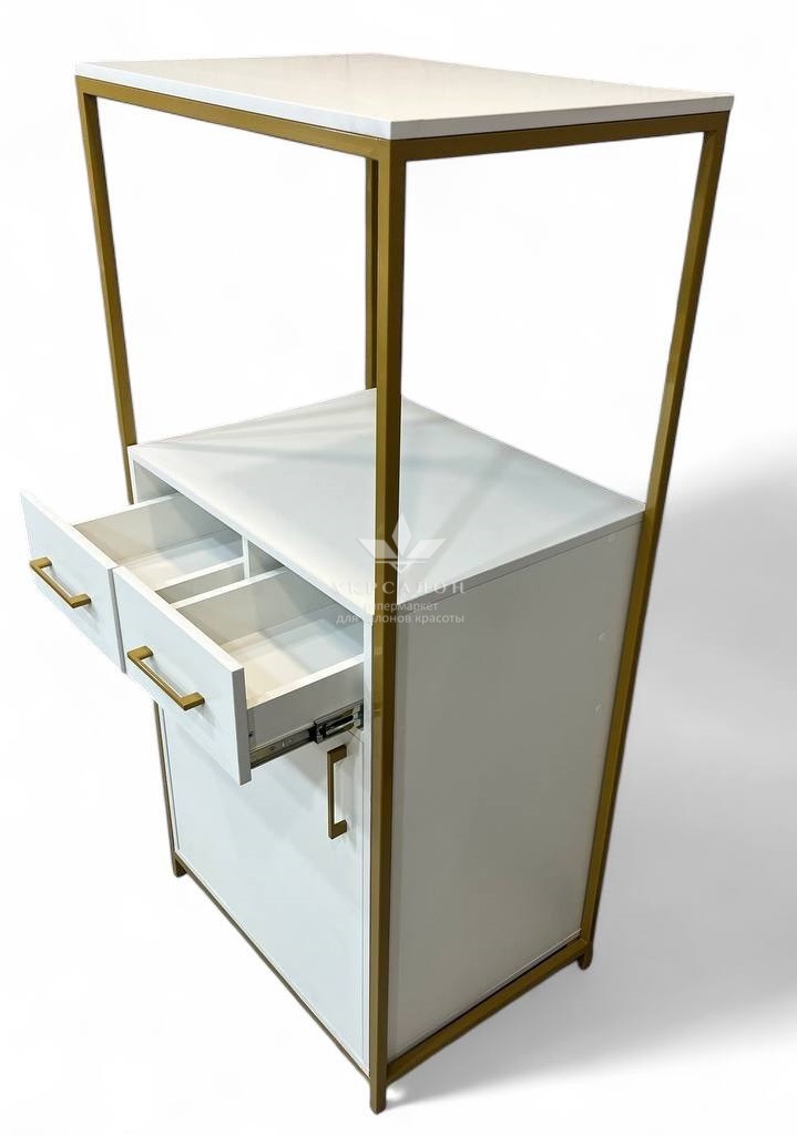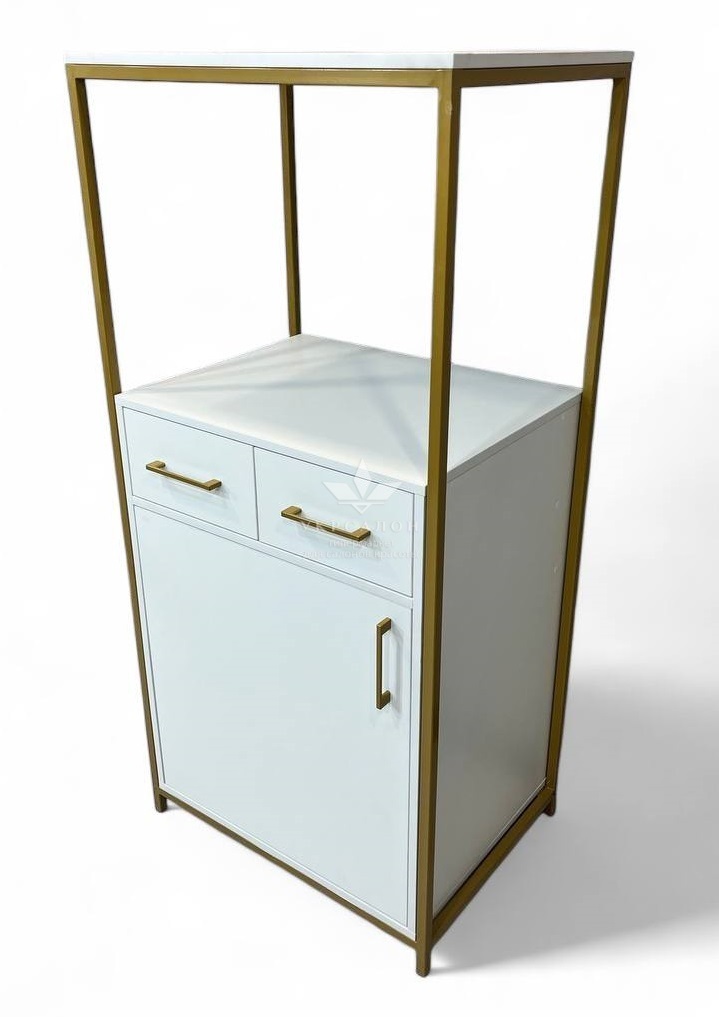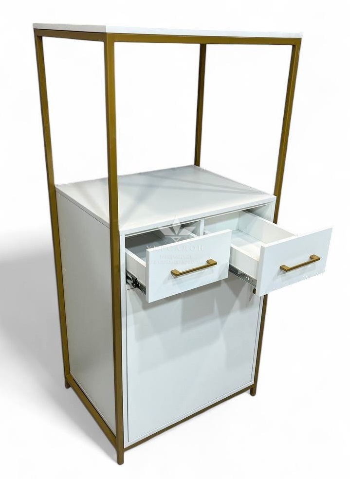 Стеллаж для салона красоты Aurum — это элегантное и практичное решение, которое придаст любому помещению завершённый и стильный вид. Он объединяет эстетику современного минимализма с прочностью металлической конструкции, что делает его идеальным выбором для салонов красоты, офисов, бутиков и домашнего интерьера.