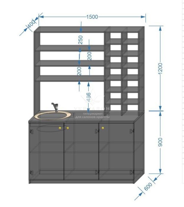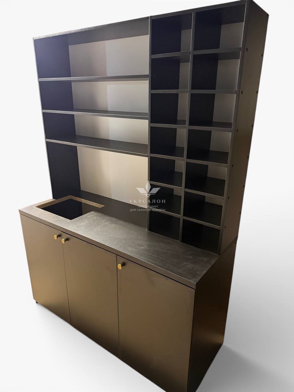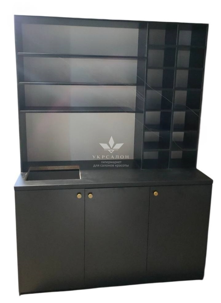 - максимальна функціональність: поєднання відкритих полиць та закритих секцій дозволяє зручно розподілити косметику, текстиль та професійне приладдя;