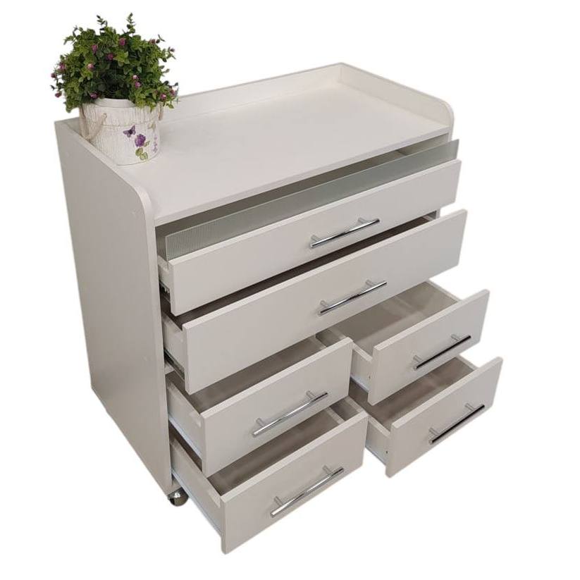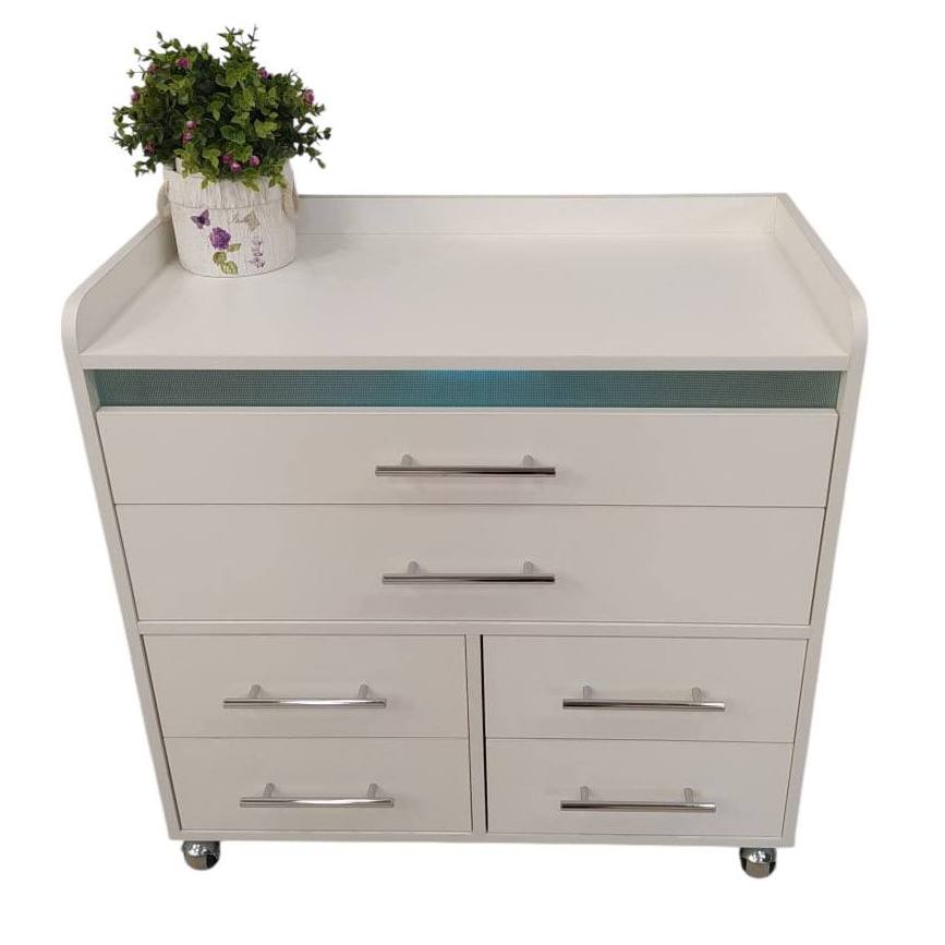 Встроенная УФ-лампа обеспечивает дополнительную стерилизацию инструментов, создавая безопасные и гигиеничные условия для работы. Конструкция с пятью ящиками на телескопических направляющих гарантирует плавное и бесшумное открывание, обеспечивая легкий доступ ко всем необходимым материалам.