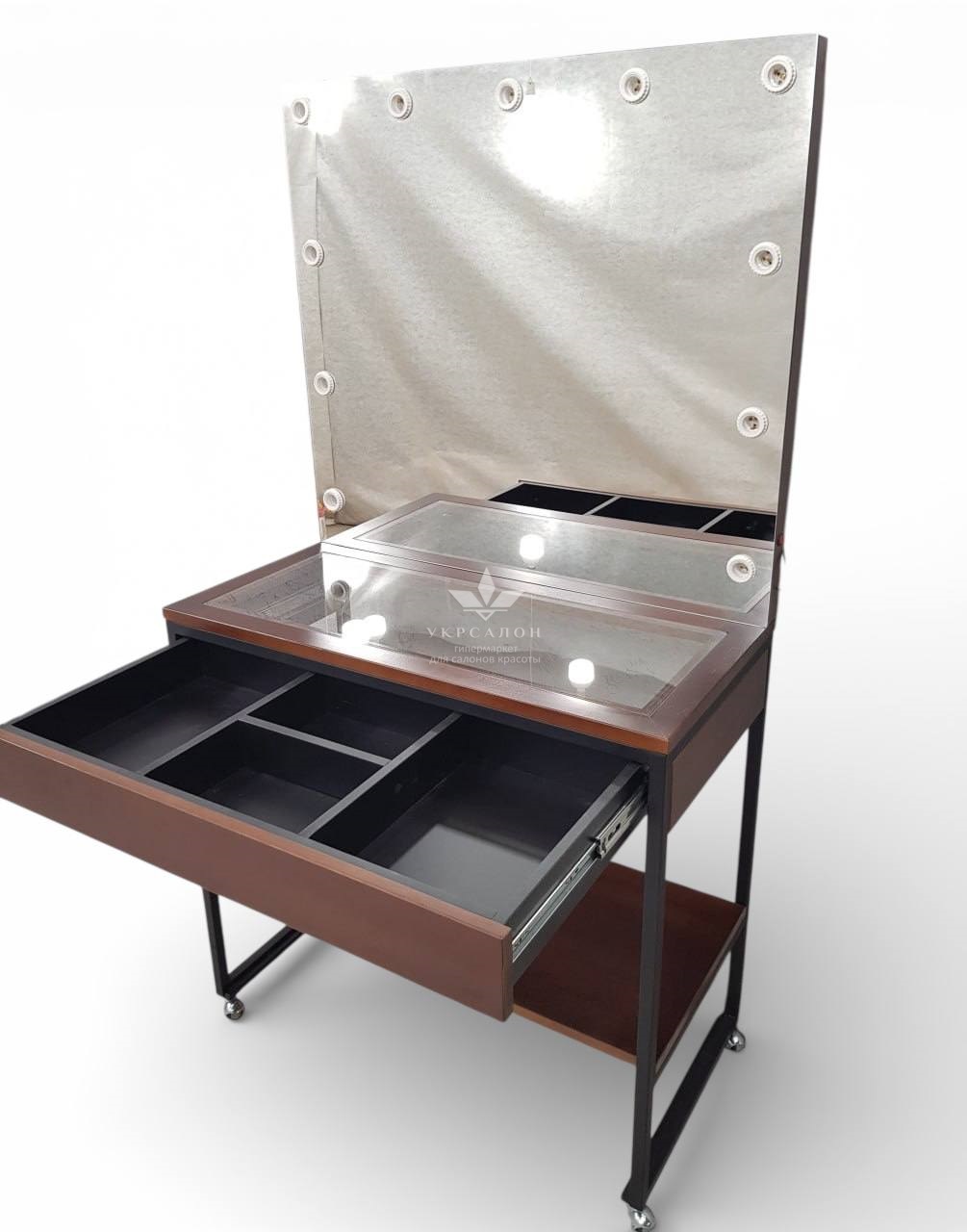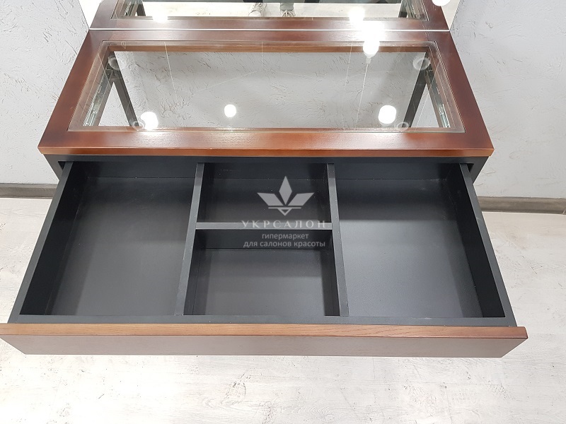 - продуманная организация хранения: вместительный выдвижной ящик с разделителями помогает аккуратно и логично разместить инструменты и косметику;