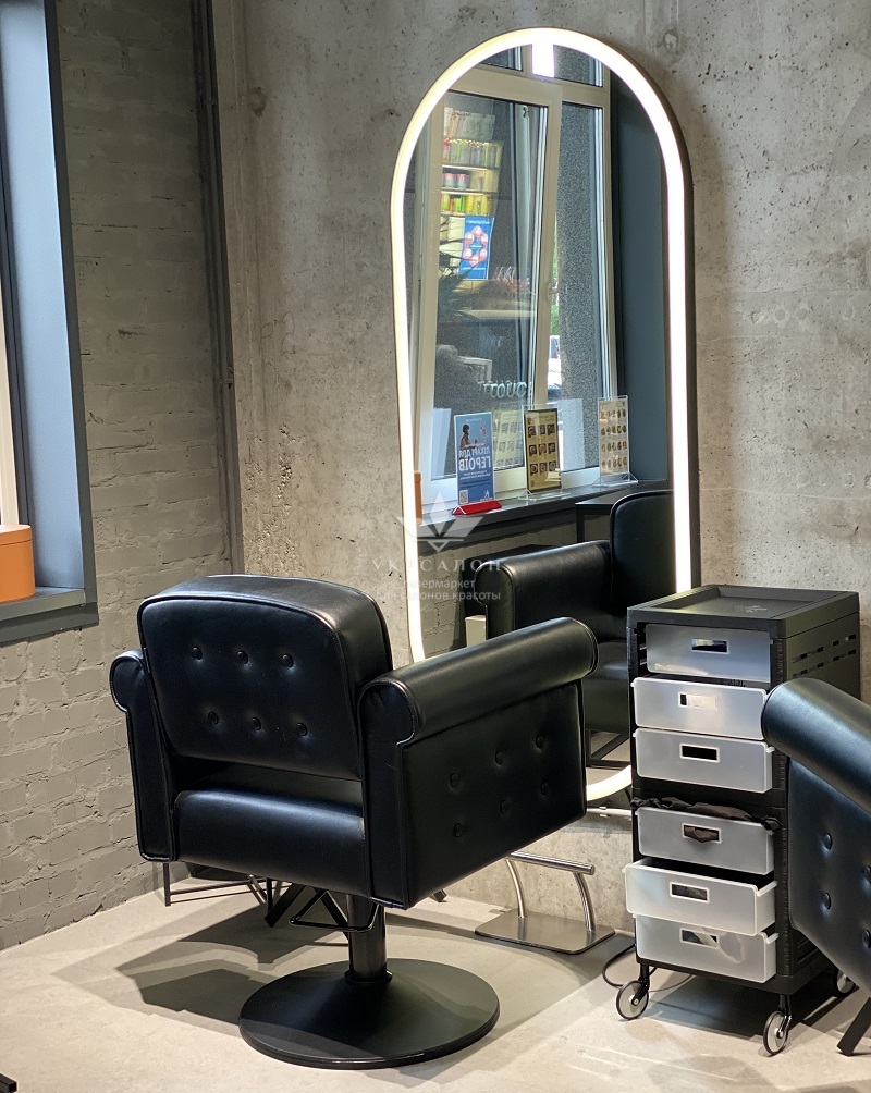 Эксклюзивное зеркало в металлической раме с LED подсветкой это функциональное и стильное решение для создания изысканного и элегантного рабочего пространства в салоне красоты и один из основных элементов парикмахерского оборудования.