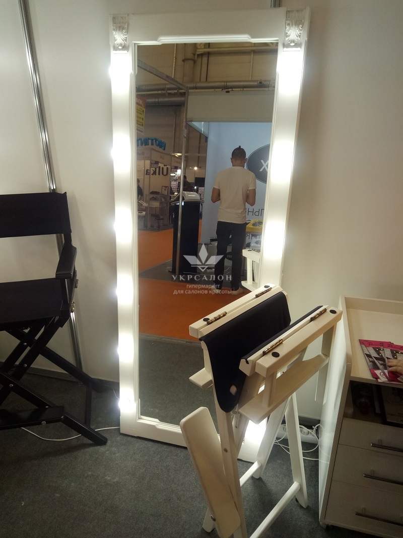 Зеркало Apolo ЗК5 — профессиональное напольное зеркало с подсветкой, разработанное для оснащения рабочих зон в салонах красоты, студиях визажа, гримёрных и фотопространствах. Свет, расположенный по периметру, обеспечивает корректную цветопередачу и комфортные условия работы без теней и визуальных искажений.