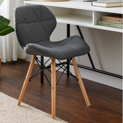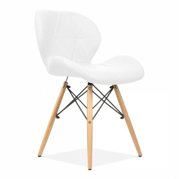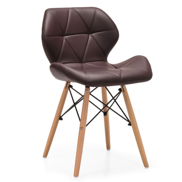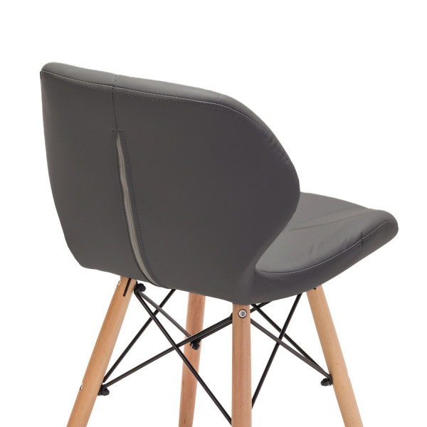 База - 4 букові ніжки з металевими прутами. М'яке зручне сидіння ергономічної форми оббите якісною екошкірою і прошито трикутниками.
