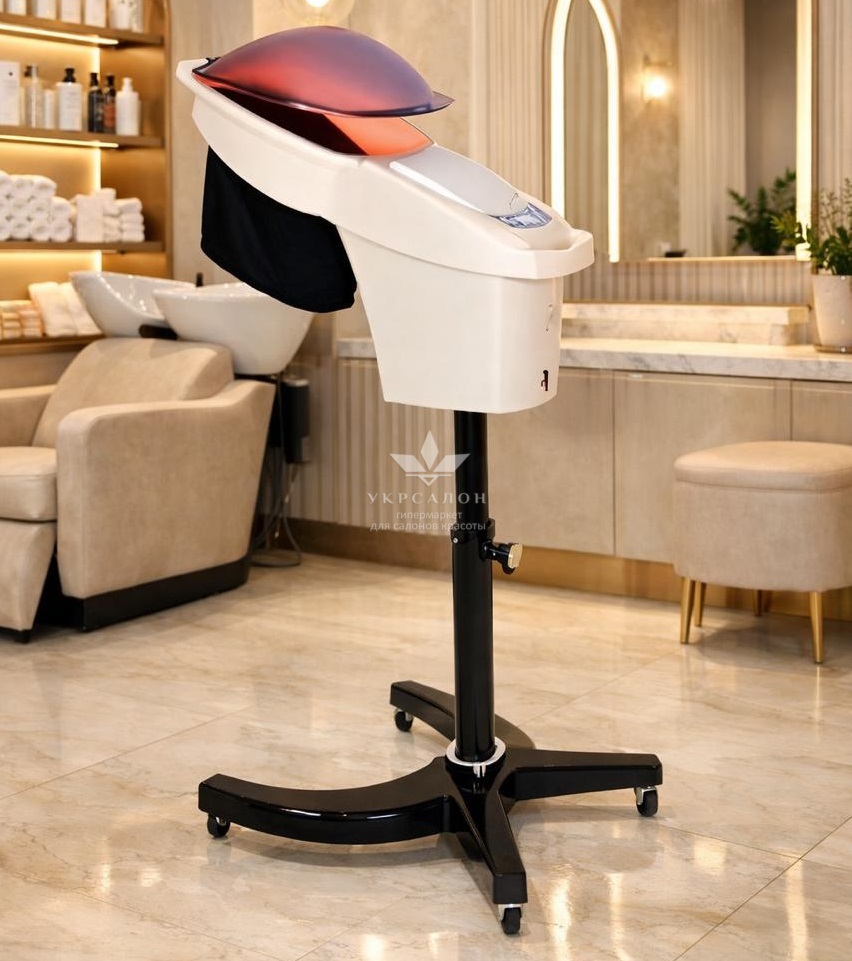 Функции озонотерапии и три программы для окрашивания, промасливания и увлажнения делают устройство незаменимым для восстановления здоровья волос. Классическая база на четырёх колесах обеспечивает мобильность, а вместительный резервуар для воды позволяет сократить время на заполнение, делая уход более быстрым и удобным.