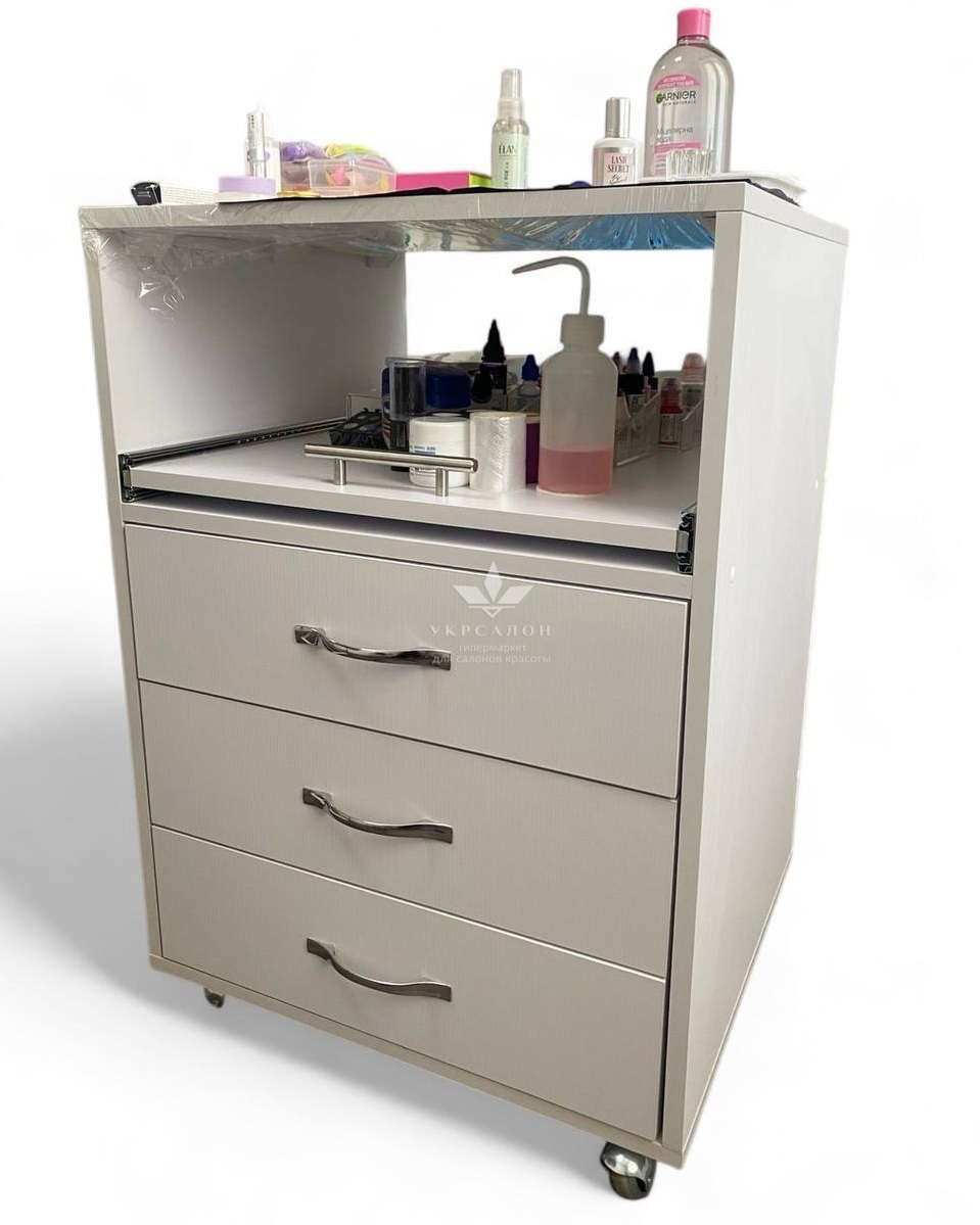 Каркас візка виконаний з ДСП, в основі надійні коліщатка, для зручності пересування.