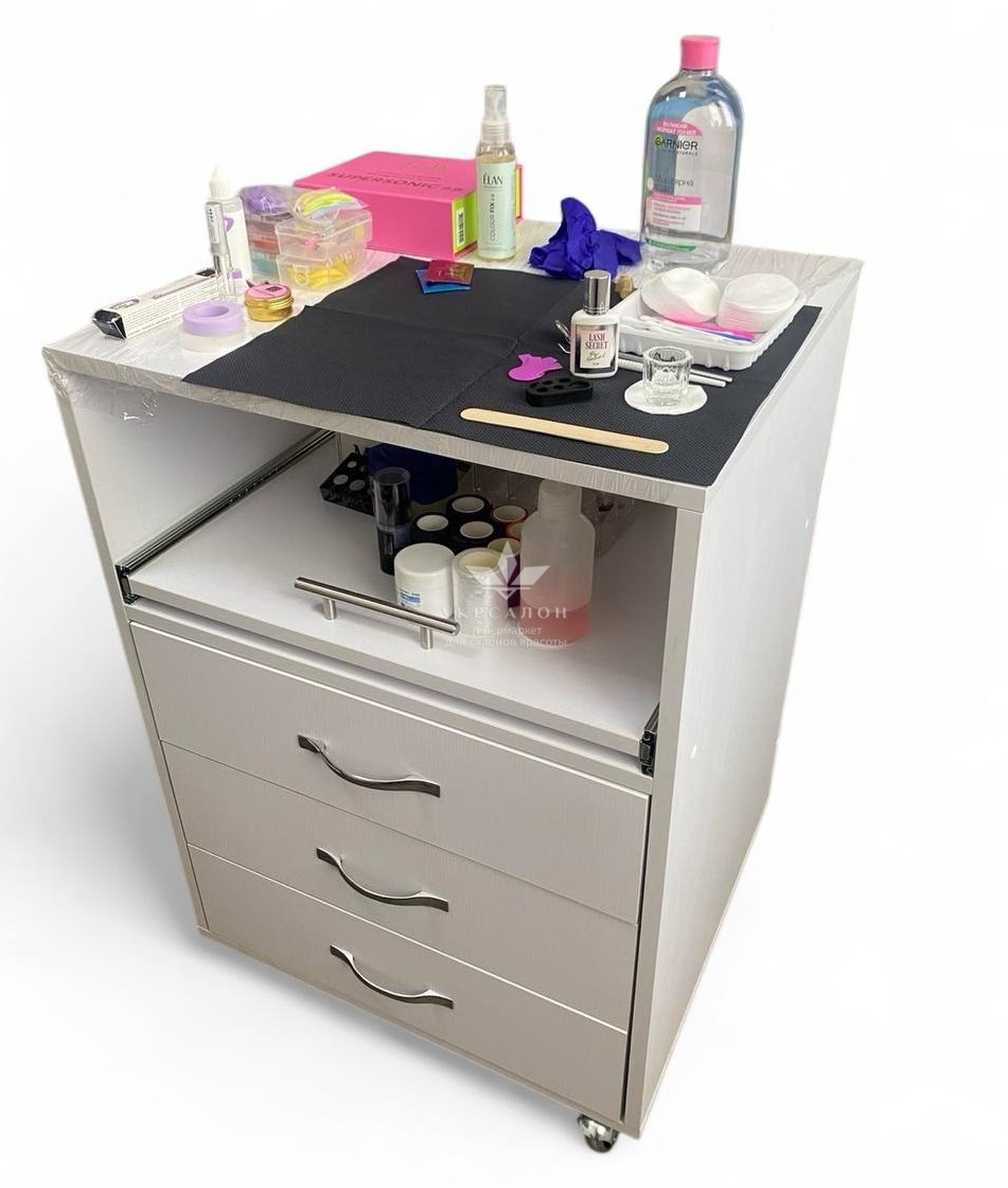 Три ящика і одна полиця, виконані з якісного ДСП, легко піддаються обробці дезінфікуючими засобами.